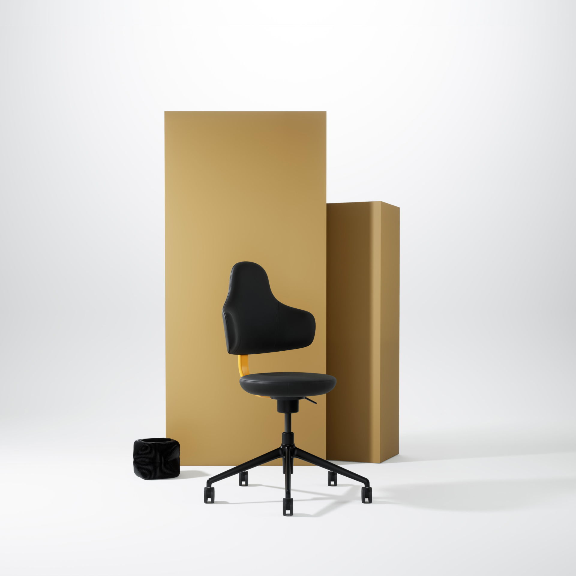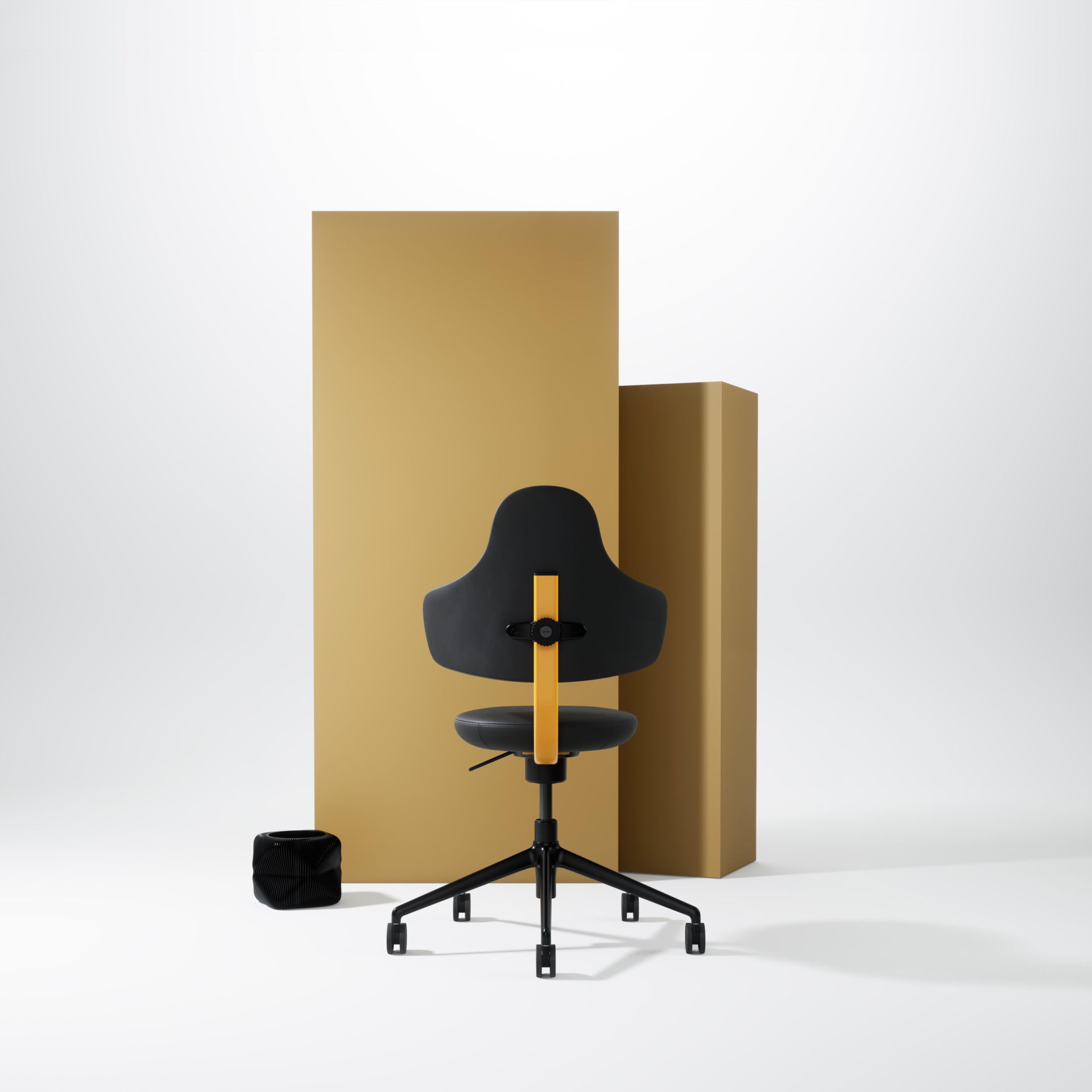 Spine is a modular and ergonomic platform of hybrid chairs. The platform construction means that it can be easily rebuilt into all the variants within the series, and be adapted to varying uses throughout the office. Spine can alternate between flexible stool, meeting chair and dedicated office chair for focused work. The seating mechanism provides 360 degrees of freedom in the sitting movement, for active sitting. Spine's layer-by-layer design means that all parts of the chair are separable and can be replaced or updated as needed, and that the parts are made from pure, recyclable materials.Spine meeting chair has a "spine", a back post with a stepless bracket for adjusting the height of the headrest.