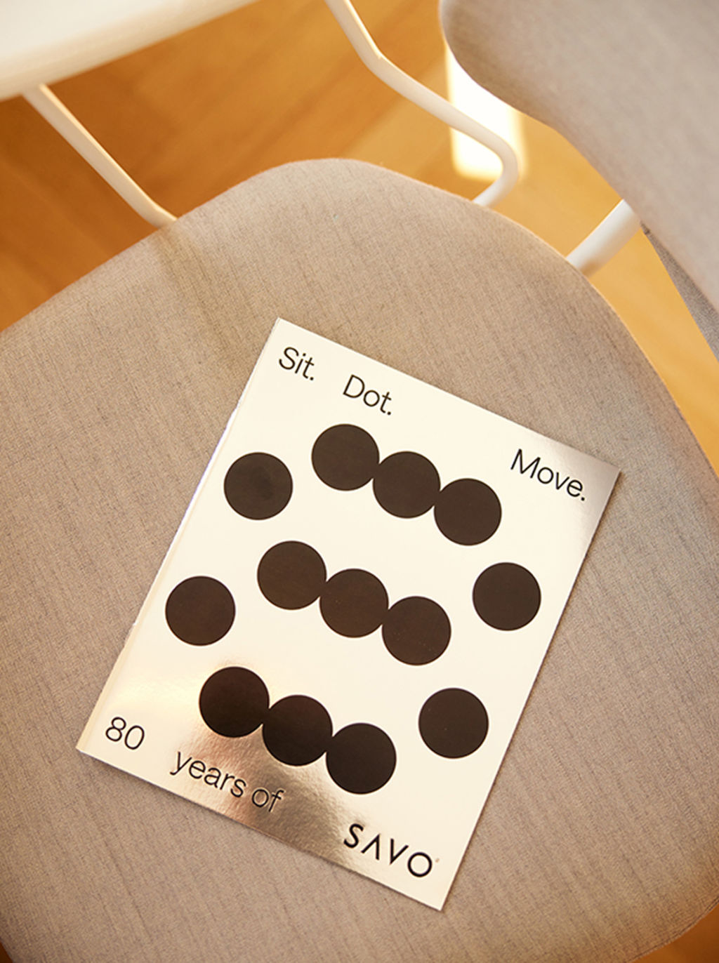 I samband med att Savo fyllde 80 år deltog vi i 3daysofdesign i Köpenhamn med utställningen Sit. Dot. Move., i samarbete med danska arkitektkontoret Archival Studies. Utställningen tog formen av en visuell tidslinje över Savos resa – en tyst stund för att stanna upp, blicka bakåt och ta sikte framåt. Genom att utforska dåtid, nutid och framtid inom arbetsplatsdesign visade utställningen vad som fortsatt präglar Savo: en designfilosofi med lång livslängd.