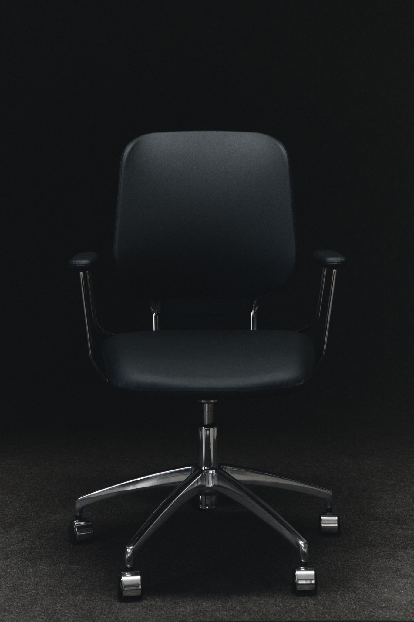 Helsvart – elegant, avskalat och precist. Det svarta kvalitetslädret förstärker det rena uttrycket. Metallbenen tillför en subtil variation.