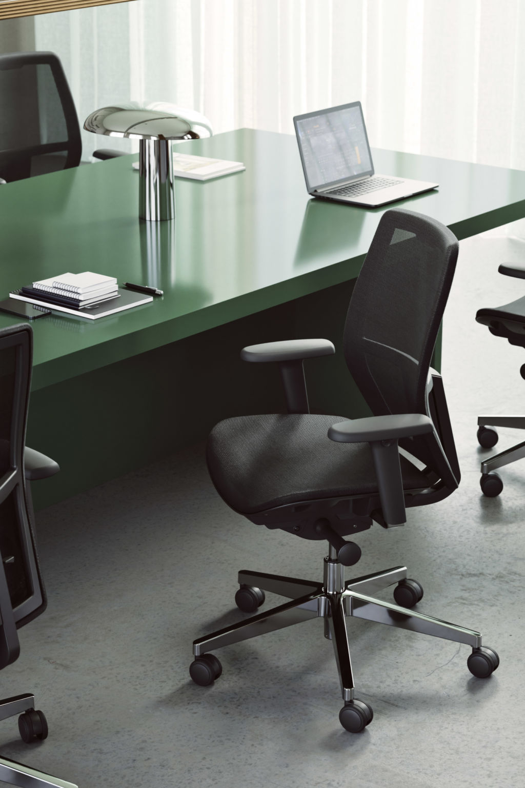 Resan mot en stol utan skum kulminerar i Savo Soul Air – en stol som gör hållbarhet synlig. Den är tillverkad av 79 % återvunnet material och är 97 % återvinningsbar, framtagen för delade och flexibla arbetsmiljöer. Den transparenta meshsitsen ersätter skum med luft, vilket ger en lätt känsla – både i form och klimatavtryck.